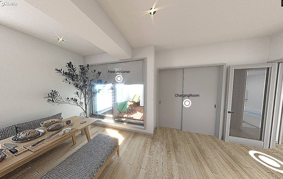 Relaxation RoomとCharging Roomはスライドドアで緩やかに仕切る設計。