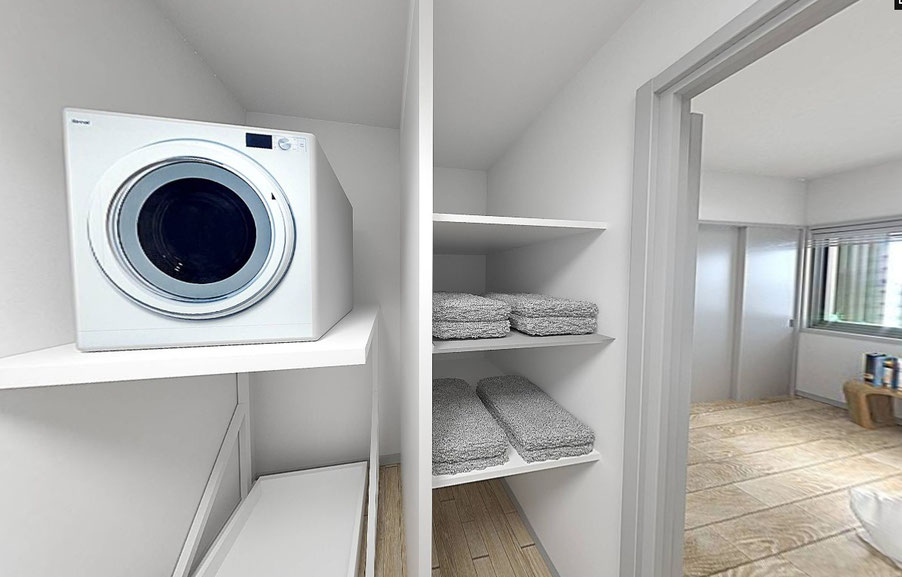 ① 幹太君(ガス式衣類乾燥機)で、電気式だと一晩かかる衣類乾燥が1時間で仕上がる! しかも、ふんわり肌触り良く仕上がる。参考URL:https://rinnai.jp/lp/kanta
