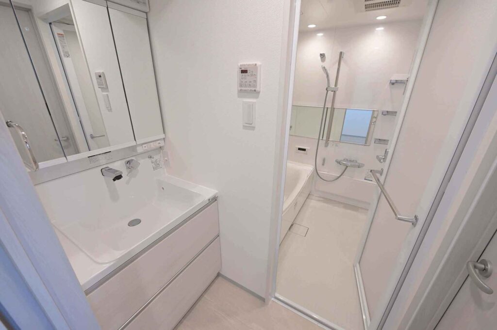 B Bed:エステでオイルマッサージも施してジェットバスに入る場合、生活臭を最小限にするため、キッチンもホワイト系保護色に。